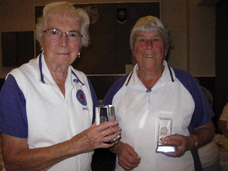 Betty and Anne celebrating winning Kay Tanners Pairs