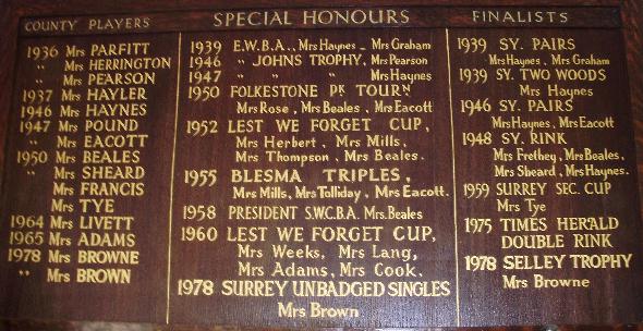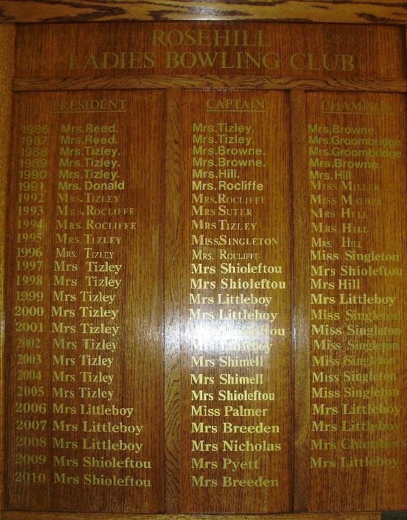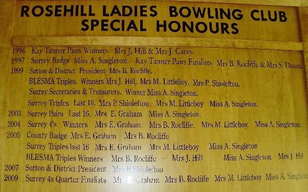 Rosehill Ladies Bowls Club - Honours